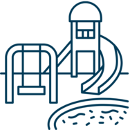 - Weatherproofing: Choose equipment and materials that can withstand the elements, such as rust-resistant metals, UV protected plastics, and weather treated wood. These features will help extend the life of your playground.