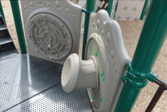 Incorporating ground level play components ensures all kids are able to play. Ground level play elements are pieces that are accessible from the ground. Choose pieces like musical instruments, play panels, spinners, tunnels, or other freestanding tables that are:
